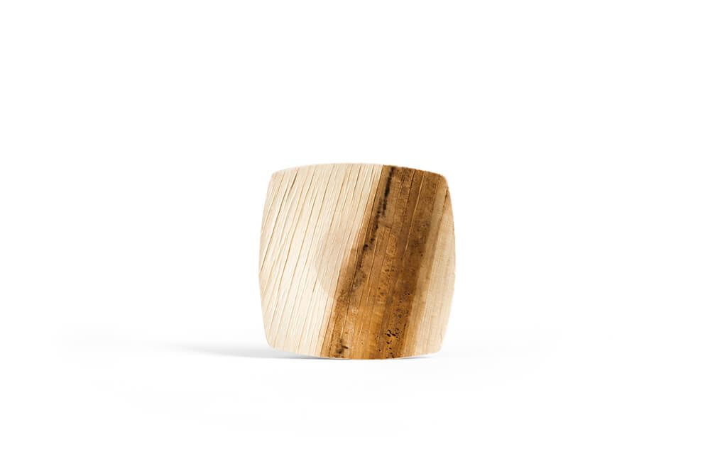 La feuille de palmier évite quant à elle ces désagréments au vu, déjà, de sa facilité de combustion. De plus, il s’agit d’une feuille naturellement tombée d’un palmier d’arec : le matériau est prélevé directement dans la nature et ne nécessite donc aucune transformation coûteuse pour être utilisé par Leef.