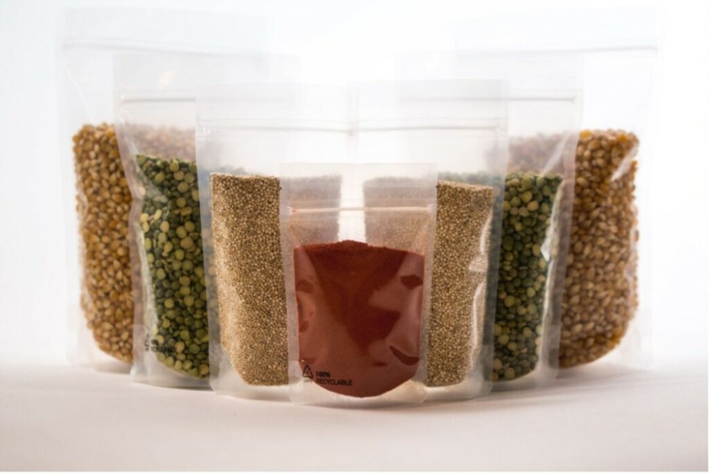 Autre innovation : un sachet stand-up mono-matériau. En général, les sachets stand-up sont fabriqués à partir de plusieurs types de plastique différents. Les sacs constituent ainsi des barrières idéales pour l’oxygène, la chaleur ou l’eau, par exemple. Bien que les barrières soient excellentes, la recyclabilité de ces produits reste très complexe. Du coup, dans l’UE comme aux États-Unis, ces sacs ne sont pas recyclables et sont destinés à être mis à la décharge et/ou incinérés.