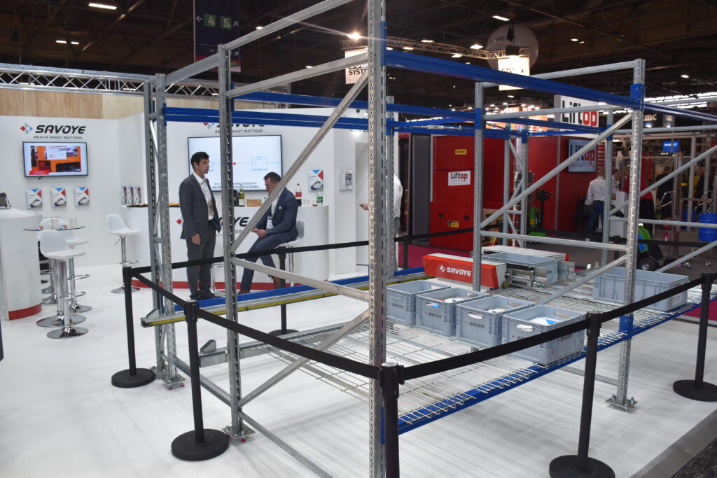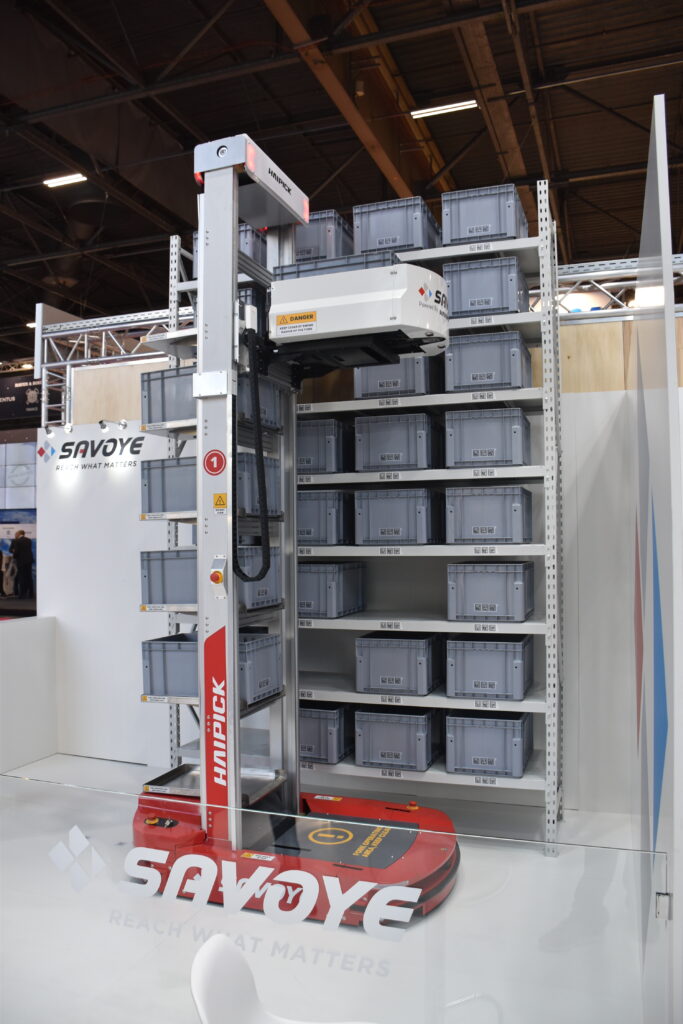 Savoye exposait donc ces nouveaux modules « goods-to-person » sur son stand, avec notamment la gamme de robots autonomes de préparation de commandes « Haipick », dédiés à l’exécution des tâches entres les postes de travail et les étagères de stockage des produits : conçus pour fonctionner dans des environnement allant de 0 à 45°, ces robots naviguent de manière autonome et assurent la manutention et l’acheminement des biens vers l’opérateur.