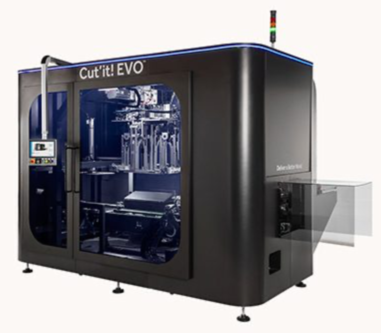 Le Cut’it ! EVO sort du lot grâce à son innovation en termes de processus d’emballage. Une fois que les produits sont emballés, la machine va déterminer le point de remplissage le plus élevé du carton, puis couper le carton excédentaire et y appliquer automatiquement un couvercle collé.